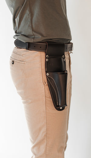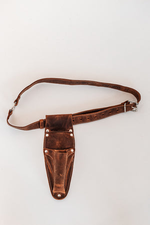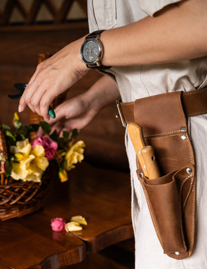 Personalized leather Hori Hori Sheath belt with Pruner and Scissor Pockets. (listing is for sheath and belt as a set).