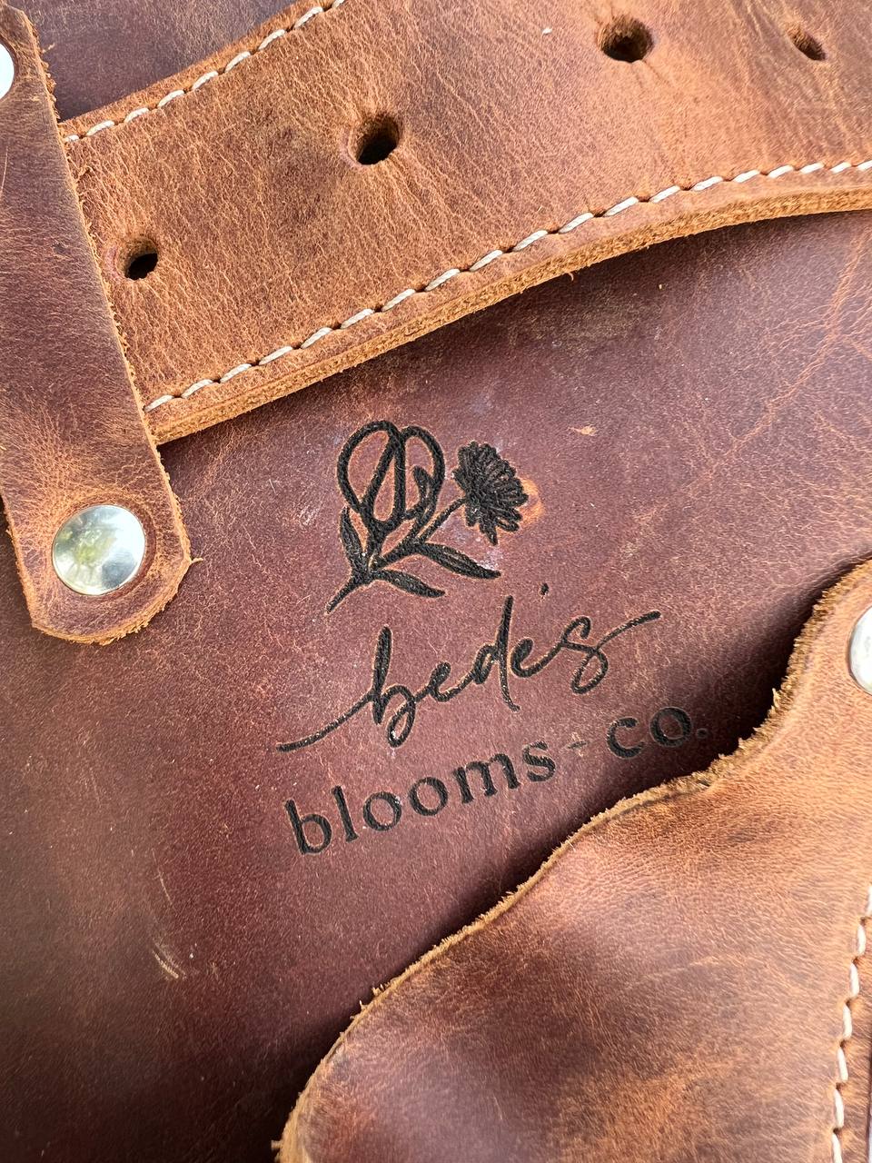Personalized leather florist tool bag. Please, add a not to your personalization request.