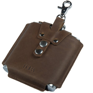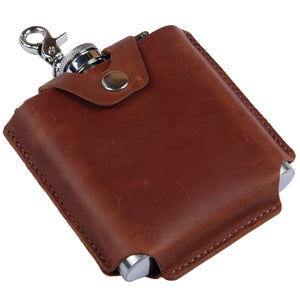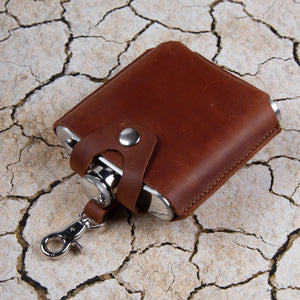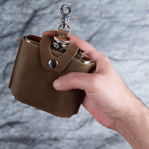 Our leather sleeves will be a perfect addition for every hiker, climber, and tourist out there! Flasks are held in with a leather flap lid and a high quality snap, so you wont need to worry about it falling from the case. Plus, our flask sleeves can be attached to a backpack, while you travel, with a hight quality spring snap.