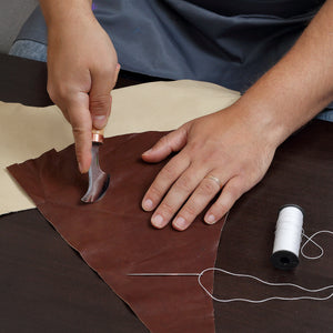 All of our leather working tools are sharp, so you need to be very careful when you are working with them. Make sure to use your wrist, and not your elbow, to control knives.